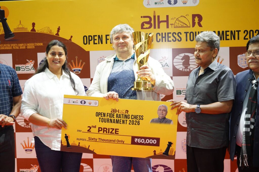 बिहार राज्य खेल प्राधिकरण, खेल विभाग , बिहार सरकार एवं अखिल बिहार शतरंज संघ के संयुक्त तत्वावधान में पटना के कंकड़बाग स्थित पाटलिपुत्र खेल परिसर में चल रही बिहार ओपन फिडे रेटिंग शतरंज प्रतियोगिता आज सम्पन्न हो गई। आज खेले गए अंतिम चक्र में बोर्ड नम्बर एक पर रूस के ग्रैंडमास्टर पीटर क्रियाकोव ने शुरुआती भूल के मद्देनजर महज तेरह चालों में बाजी ड्रा कर ली। वहीं दो नम्बर बोर्ड पर महाराष्ट्र के महेंद्रकर इंद्रजीत ने बंगाल परमब्रत सरकार को पराजित कर शीर्ष पर आ गए । मुकाबला तब और भी रोचक हो गया जब हरियाणा के पृथ्वी शर्मा ने नेपाल चैंपियन रुपेश जायसवाल को पराजित कर शीर्ष स्कोर ग्रुप में स्थान बना लिया। इस तरह आठ अंकों के साथ पीटर, महिंद्रकर एवं पृथ्वी तीनों संयुक्त रूप से शीर्ष पर आ गए। तत्पश्चात, टाई ब्रेक अंकों के आधार पर हुए निर्णय में आधे अंक के अंतर से इंद्रजीत महिंद्राकार को विजेता , ग्रैंडमास्टर पीटर क्रियाकोव को उपविजेता तथा पृथ्वी शर्मा द्वितीय उपविजेता का खिताब मिला ।